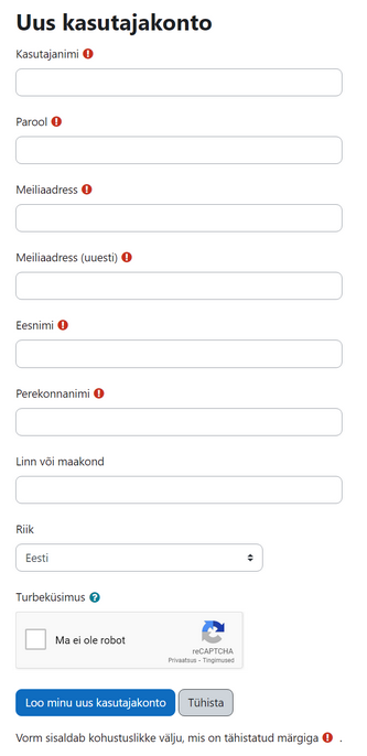Kui andmed on sisestatud ja turbeküsimusele vastatud, vajuta "Loo minu uus kasutajakonto".