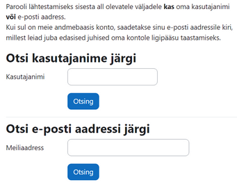Parooli lähtestamise kiri saadetakse ainult sellele e-postile, mis on sinu Moodle kontoga seotud.